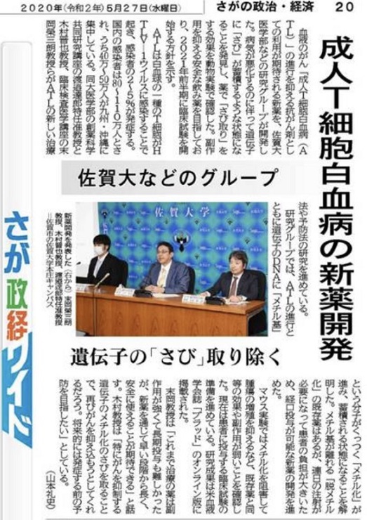 2020年5月27日の佐賀新聞にも掲載されました。(佐賀新聞社提供)