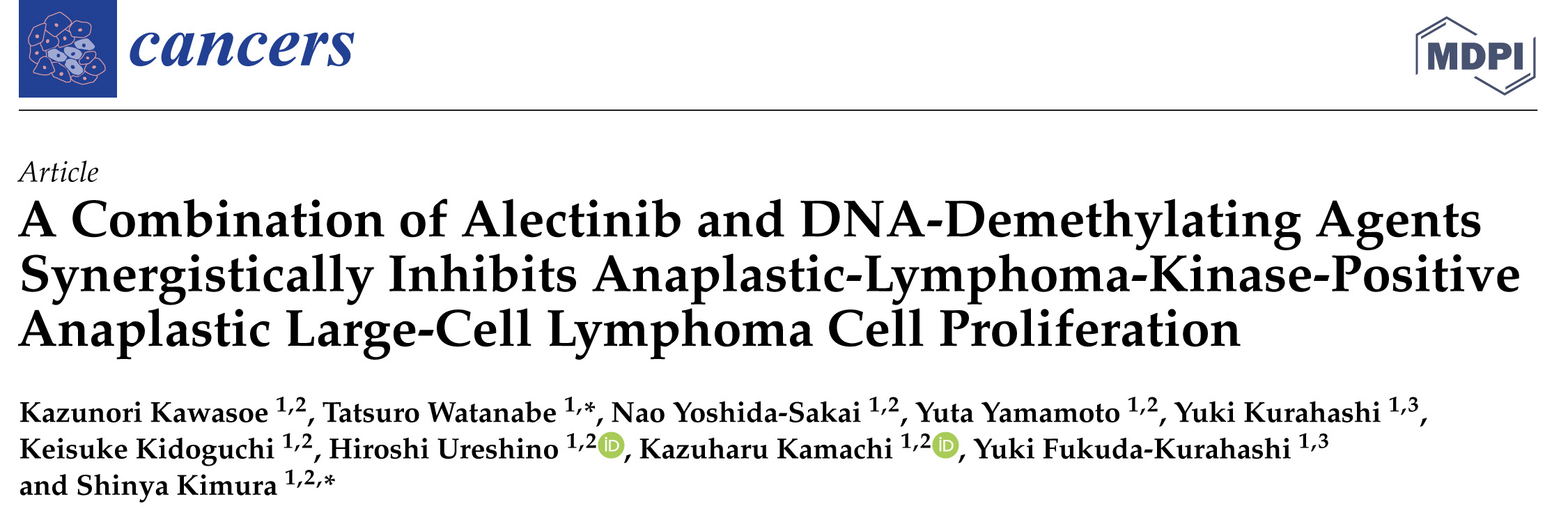 大学院3年生 川副先生の「ALK陽性未分化大細胞リンパ腫 (ALCL) に対して、我々が開発中の経口可能なメチル化阻害剤OR-2100はALK阻害剤の効果を相乗的に増強する」と言う内容の論文が掲載されました(Cancers 2023, 15(20), 5089; https://www.mdpi.com/2072-6694/15/20/5089 )。