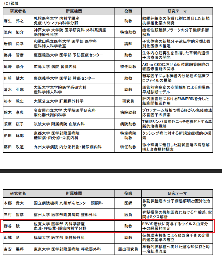 創薬科学講座の栁谷稜先生が、上原記念生命科学財団2025年度助成金の研究奨励金 (200万円/1年間) に採択されました!
