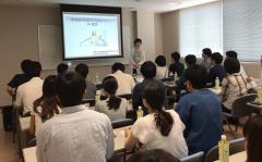 今は大学院生の3人ですが、ここに至るまでには大学病院や地域の病院で呼吸器内科医として勤務し、色々な経験を積んできました。その経験を踏まえて、呼吸器内科の魅力を力説していました。医師としてのキャリアプランに関しては、普段は話を聞くことが少ないものですので、学生さんたちも今後の自分に置き換えて、興味を持って聞いてくれている印象でした。