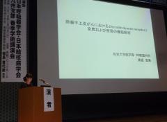 また、渡邉直美先生が学術奨励賞を受賞され、大学院博士課程卒業論文である「肺扁平上皮がんにおけるDiscoidin Domain Receptor 2変異および発現の機能解析」について、受賞講演を行いました。