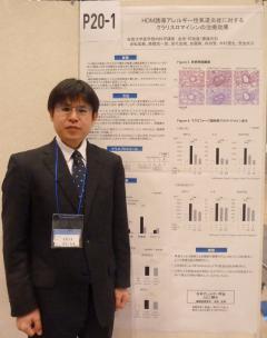 貞松宏典先生は自身の大学院での研究内容である、ウィルス感染による喘息の増悪マウスモデルにおいて、マクロライド系抗菌薬が気道炎症を抑制することを、ポスターセッションにて発表しました。
