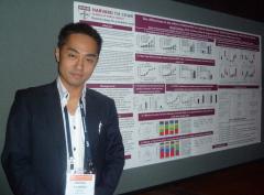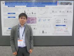 貞松先生は、「An Effect of Novel Non-Antibiotic Macrolide EM900 in HDM-Induced Airway Inflammation Mice Model」と題して、自身の大学院での研究内容である喘息増悪モデルにおいてマクロライド誘導体EM900が気道炎症を抑制することを、ポスターセッションにて発表しました。