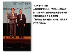 木村晋也教授が、永年のCMLに対する創薬・育薬への貢献が認められ、H30年度日本がん分子標的治療学会の学術賞「鶴尾 隆賞」に選ばれ、令元年6月13日に表彰式と受賞講演が大阪国際交流センターで行われました(写真添付)。