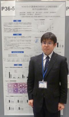 貞松宏典先生は、ポスター発表のセッションにて「マクロライド誘導体EM900による喘息増悪に対する治療の試み」と題して自身の大学院での基礎研究のデータを発表しました。