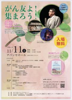 「がん友よ!集まろう!」(がん患者の、がん患者による、がん患者のための大会)が11月11日土曜日に佐賀市のアバンセホールにて開催されます。