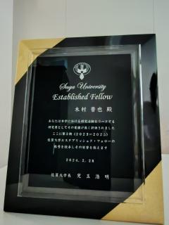 佐賀大学では、エスタブリッシュド・フェロー(卓越研究者)制度が平成29 年度に創設されました。研究費獲得、受賞、論文、特許出願などの実績をもとに3年ごとに選考が行われ、各期 5-8名がエスタブリッシュド・フェローの称号を受けます。木村晋也教授は、第I期、第II期、第III期と3期連続でエスタブリッシュド・フェローに選ばれました。