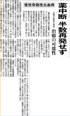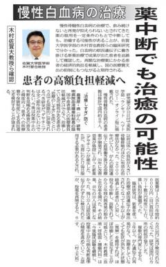 以前にご報告したとおり、木村晋也教授が研究代表を務める、ダサチニブ中断試験DADI trial の結果が、Lancet Haematology誌に掲載されました!